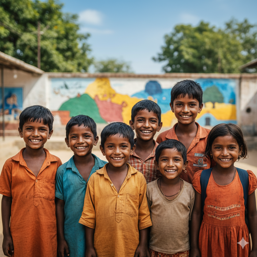 Smiling children enjoying a sunny day in Lonavala, Maharashtra, India.